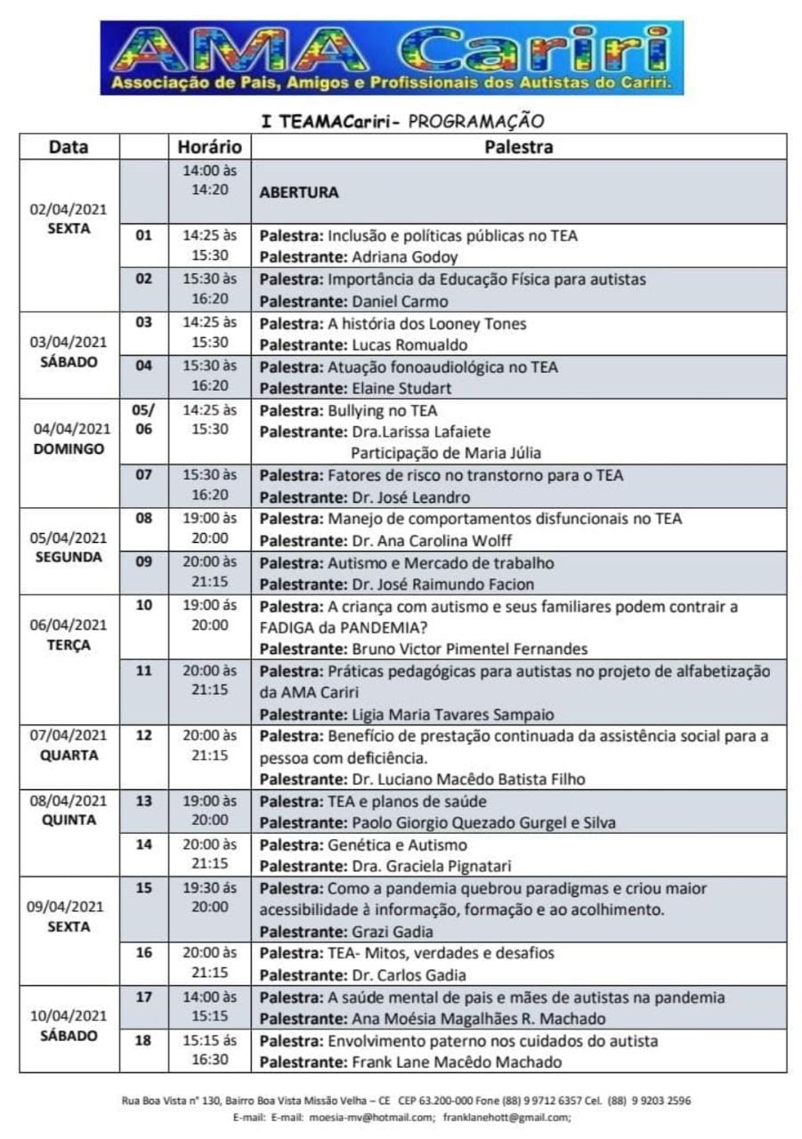 18 palestras com temas diversos, centrados na compreensão do TEA.